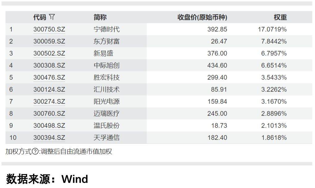 所以,有人说这是对中国经济结构转型、产业升级最直接、最有信心的表现,但这两年宁王的增速明显放缓了。所以我更相信这是市场交易的结果,宁德时代在创业板的权重,已经达到17.7%,完全绑架了创业板。宁德时代在沪深300中占3.35%,在A500占3.04%,在不少行业ETF中也是权重股。