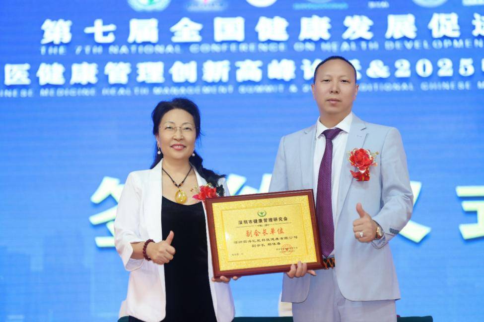 深圳市健康管理研究会齐云芳会长,为深圳前海汇能科技健康有限公司,授牌为深圳市健康管理研究会副会长单位,董事长杨体春接牌,双方将在氢医学领域展开深度合作。