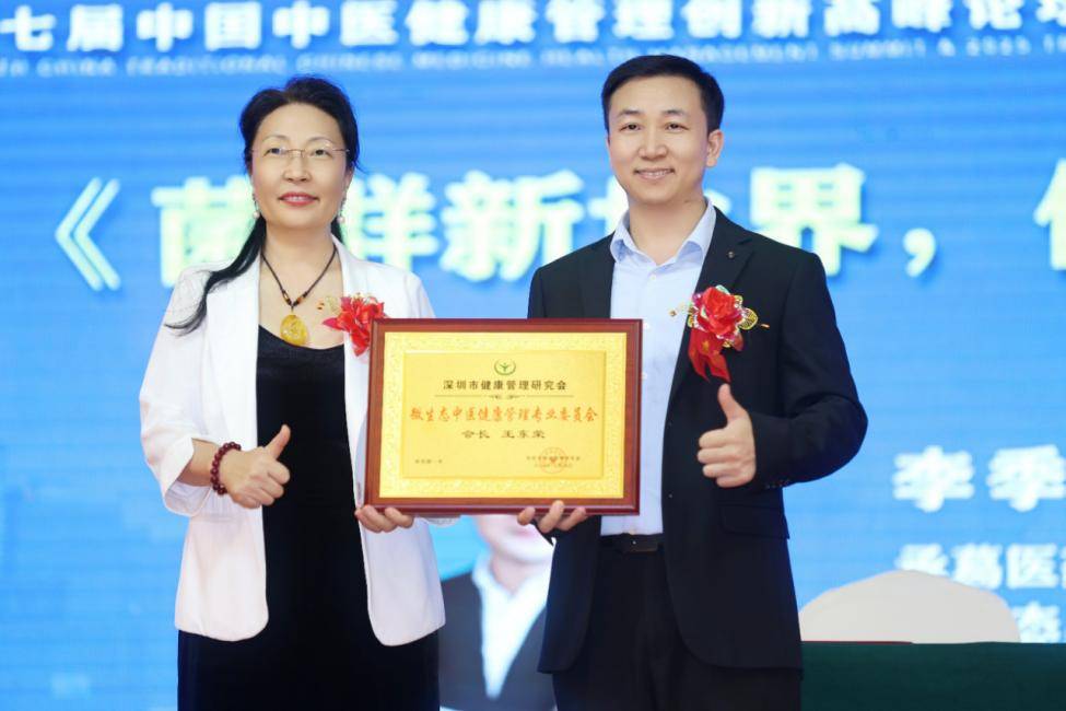 深圳市健康管理研究会与深圳市东荣健康产业科技集团有限公司签约,共同成立“深圳市健康管理研究会微生态中医健康管理专业委员会”,并授予深圳市东荣健康产业科技集团有限公司为副会长单位,王东荣董事长接牌,推动微生态技术与中医健康管理的融合创新。