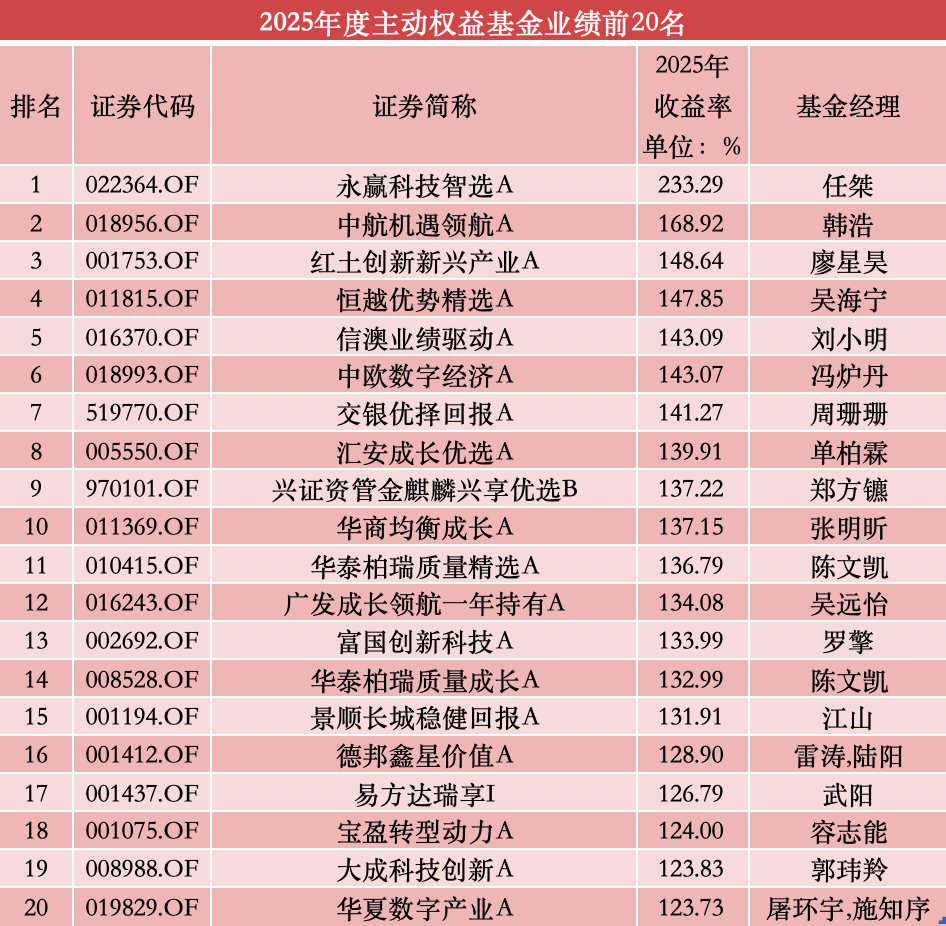 2026-01-02必威官方网站,Betway必威,必威APP下载2025年行情收官,永赢科技智选A以233.29%的年度涨幅成为2025年度“冠军基”,同时打破了由王亚伟保持了18年的公募年度收益率纪录。