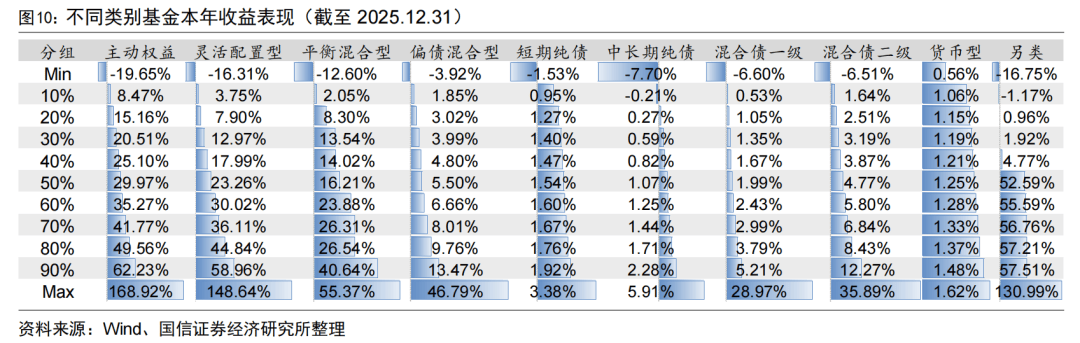 今年以来另类基金业绩表现最优,中位数收益为52.59%,主动权益型、灵活配置型和平衡混合型基金的中位数收益分别为29.97%、23.26%、16.21%。