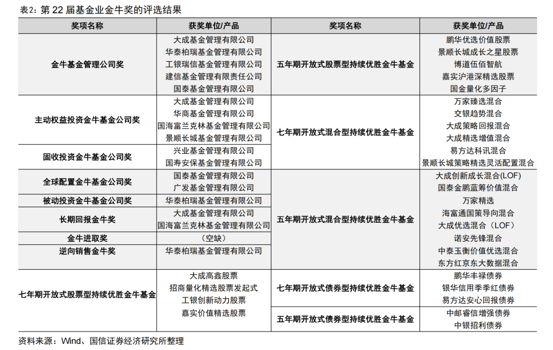 本文选自国信证券于2026年1月4日发布的研究报告《第22届基金业金牛奖评选结果揭晓,易方达率先完成ETF规范命名》