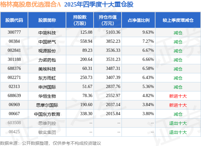 根据2025基金年报公募基金重仓股数据,重仓该股的公募基金共5家,其中持有数量最多的公募基金为格林基金的格林高股息优选混合A。格林高股息优选混合A目前规模为0.95亿元,最新净值1.6941(4月16日),较上一交易日上涨0.02%,近一年上涨24.8%。该公募基金现任基金经理为刘赞。刘赞在任的基金产品包括:格林碳中和主题混合A,管理时间为2023年1月19日至今,期间收益率为66.54%;格林鑫利六个月持有期混合A,管理时间为2023年3月20日至今,期间收益率为21.86%;格林港股通臻选混合A,管理时间为2024年4月22日至今,期间收益率为22.17%。