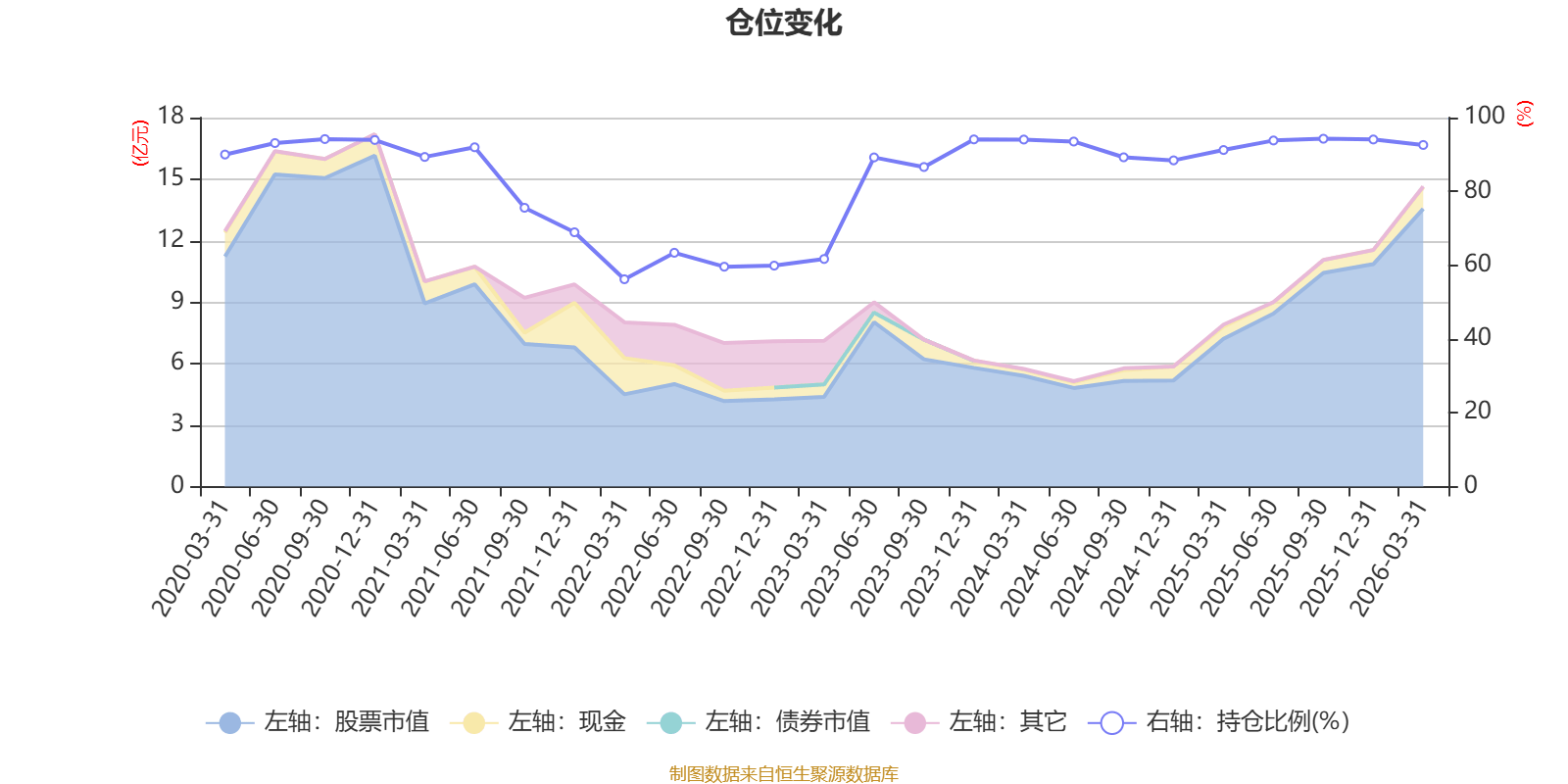 据定期报告数据统计,近三年平均股票仓位为91.76%,同类平均为86.06%。2025年三季度末基金达到94.27%的最高仓位,2022年一季度末最低,为56.19%。