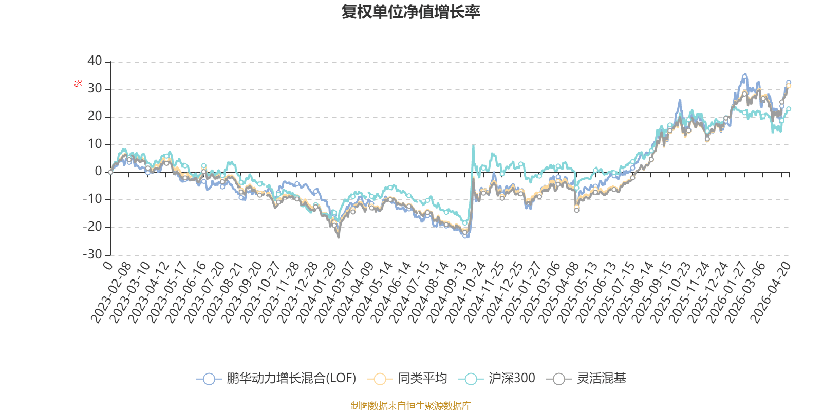 截至4月20日,鹏华动力增长混合(LOF)近三个月复权单位净值增长率为1.10%,位于同类可比基金615/1287;近半年复权单位净值增长率为15.08%,位于同类可比基金438/1286;近一年复权单位净值增长率为43.30%,位于同类可比基金476/1286;近三年复权单位净值增长率为26.64%,位于同类可比基金474/1286。