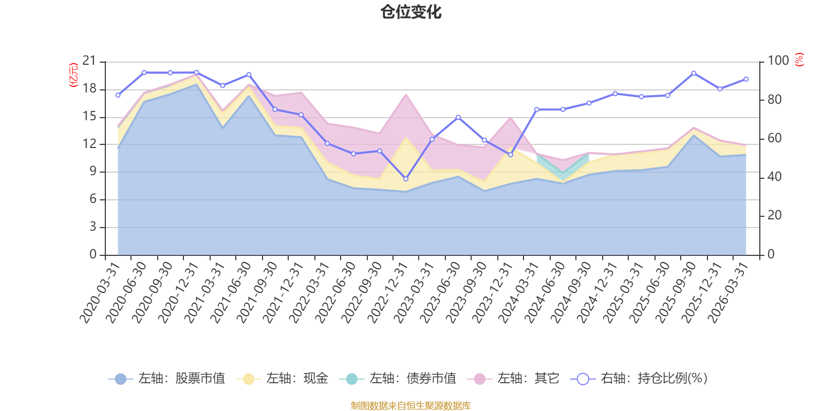 据定期报告数据统计,近三年平均股票仓位为77.54%,同类平均为72.6%。2020年末基金达到94.4%的最高仓位,2022年末最低,为39.39%。