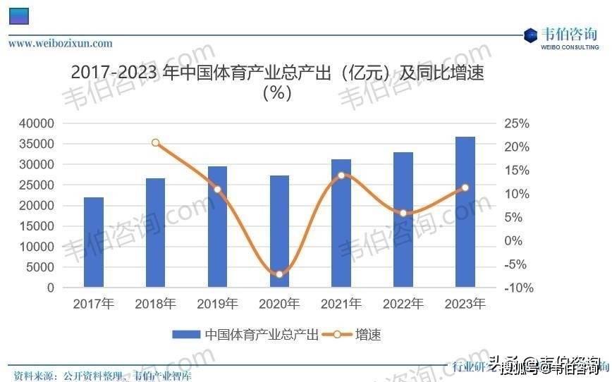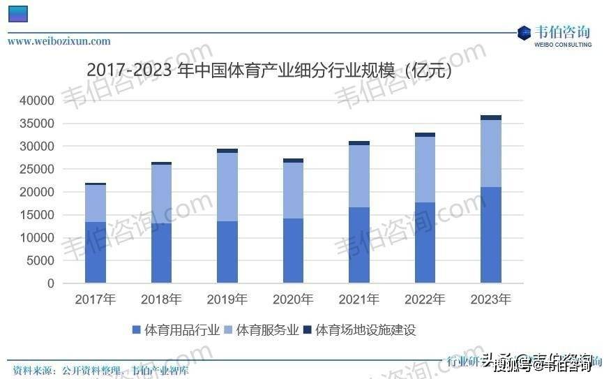 其中体育用品行业为我国体育产业重要组成部分,2023年全国体育产业总产出为36741亿元,同比增长11.31%,增加值为14915亿元,其中体育用品及相关产业制造增加值为3832亿元,占总增加值25.7%。